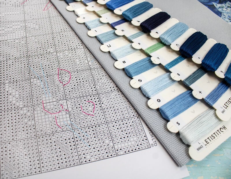 | Garen: | Anchor 6-draads borduurgaren en Madeira glittergaren |