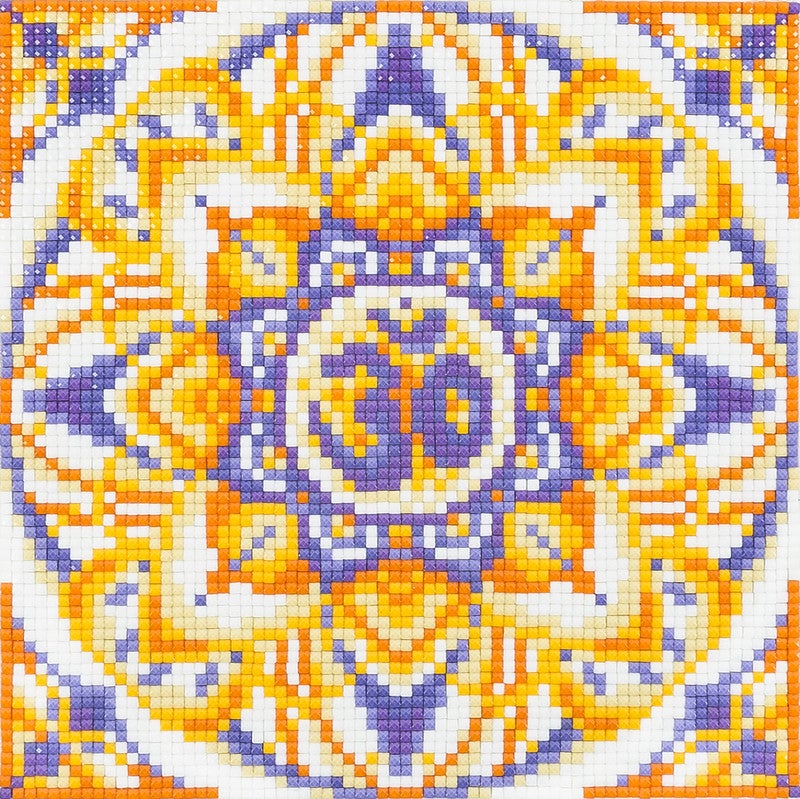 Plak eenvoudig de steentjes op het canvas volgens de symbolenlijst en maak zo je eigen schilderij.
