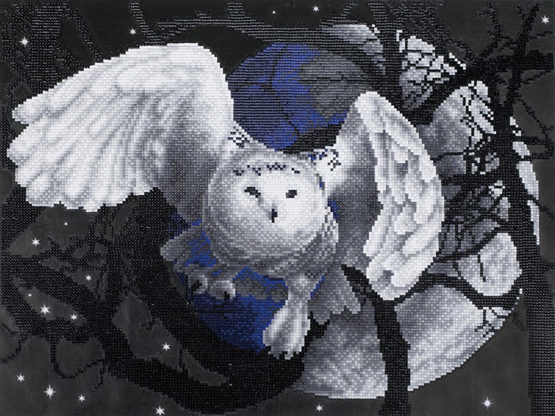 Het pakket bevat voorbedrukte polyester stof met beschermfolie, voorgesorteerde vierkante steentjes, een styluspen en pincet, een sorteerbakje, wax, gripzakjes en duidelijke instructies.