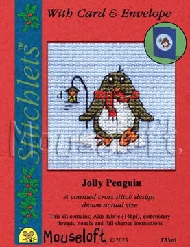 Het pakketje is compleet met ontwerp, stof, borduurgaren, naald en beschrijving.