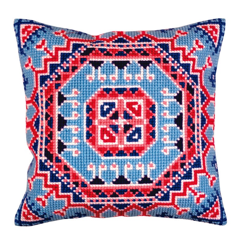 Kruissteek kussen borduurpakket op voorbedrukt canvas.
