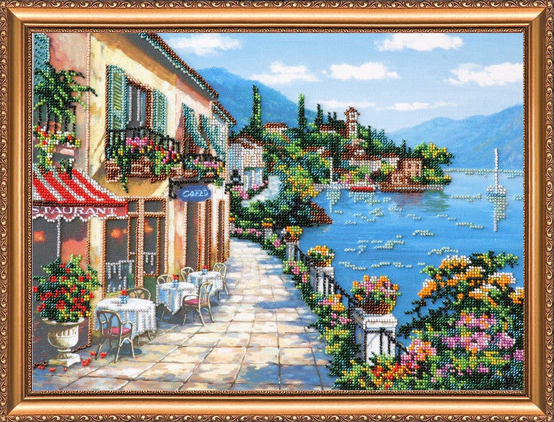 Het ontwerp is voorbedrukt op natural art canvas. De Preciosa kralen zitten netjes voorgesorteerd in gripzakjes en een naald is bijgevoegd.
