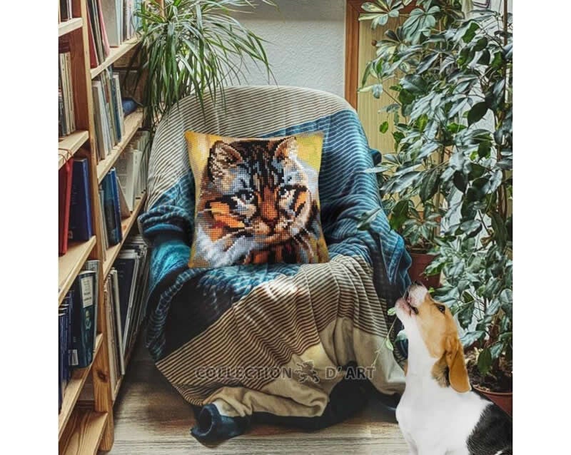 Uittel kruissteek kussen borduurpakket op blanco canvas, inclusief gekleurd telpatroon.