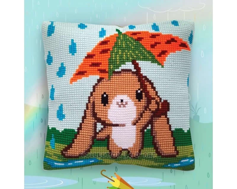 Kruissteek kussen borduurpakket op voorbedrukt canvas.