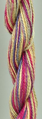 100% katoenen perlégaren (dikte #8) en handmatig in overlopende kleuren geverfd.