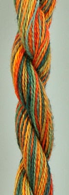 100% katoenen perlégaren (dikte #8) en handmatig in overlopende kleuren geverfd.