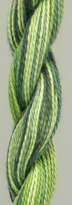 100% katoenen perlégaren (dikte #8) en handmatig in overlopende kleuren geverfd.