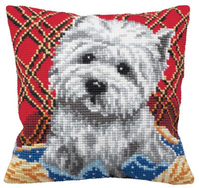Kruissteek kussen borduurpakket op voorbedrukt canvas.