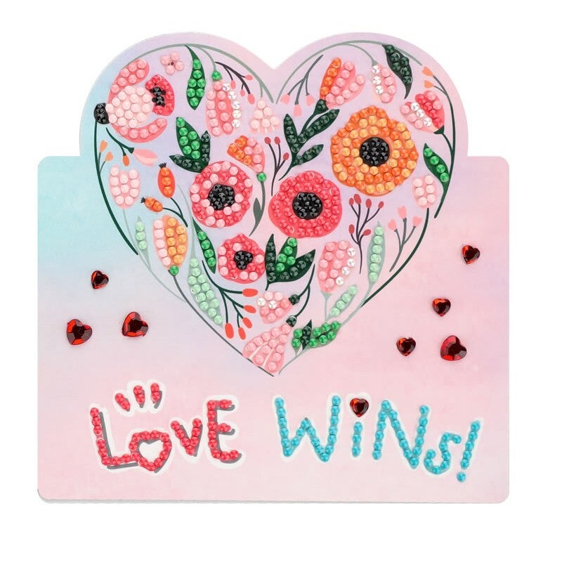 De kaarten zijn voorbedrukt met speciale lijm. Plak eenvoudig de juiste kleur Diamond Dotz op de symbooltjes en verstuur vervolgens een mooie kaart naar iemand die het verdient.