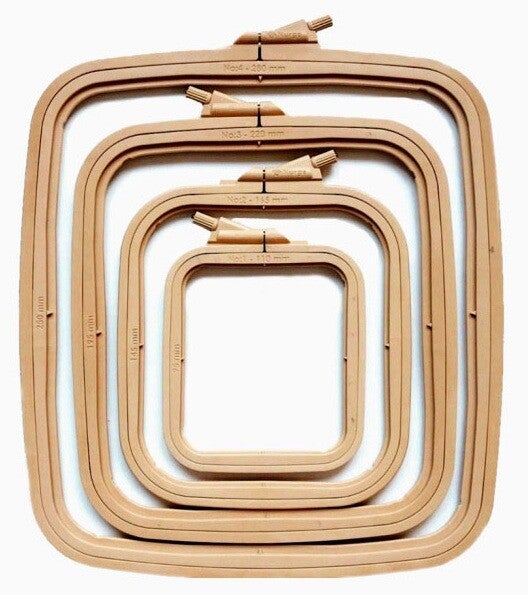 De hoogwaardige vierkante ABS-kunststof borduurringen van Nurge geven je stof een perfecte, stabiele spanning tijdens het handwerken. Dankzij de inkeping-en-groefconstructie blijft je stof stevig opgespannen, zelfs in de hoeken, waardoor je nauwkeuriger kunt werken. De ringen zijn licht, sterk en ook ideaal voor vrij machinaal borduren.