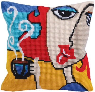 Kruissteek kussen borduurpakket op voorbedrukt canvas.