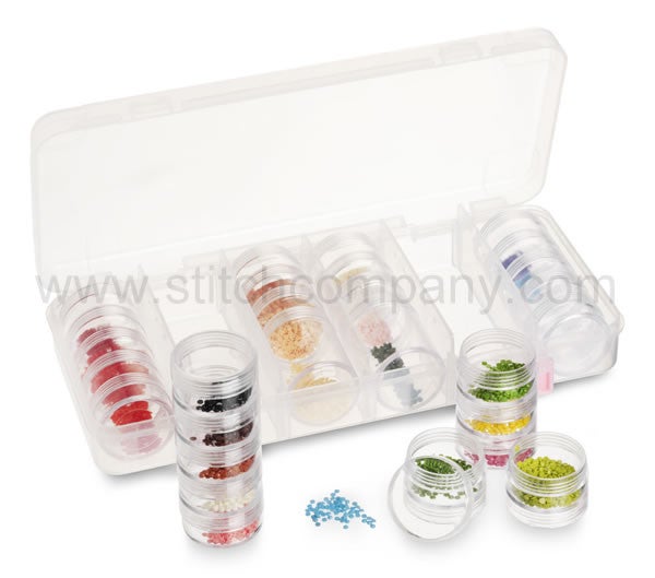 Kunststof opbergbox met 6 kokertjes (4 kokertjes met 5 potjes en 2 kokertjes met 4 potjes).