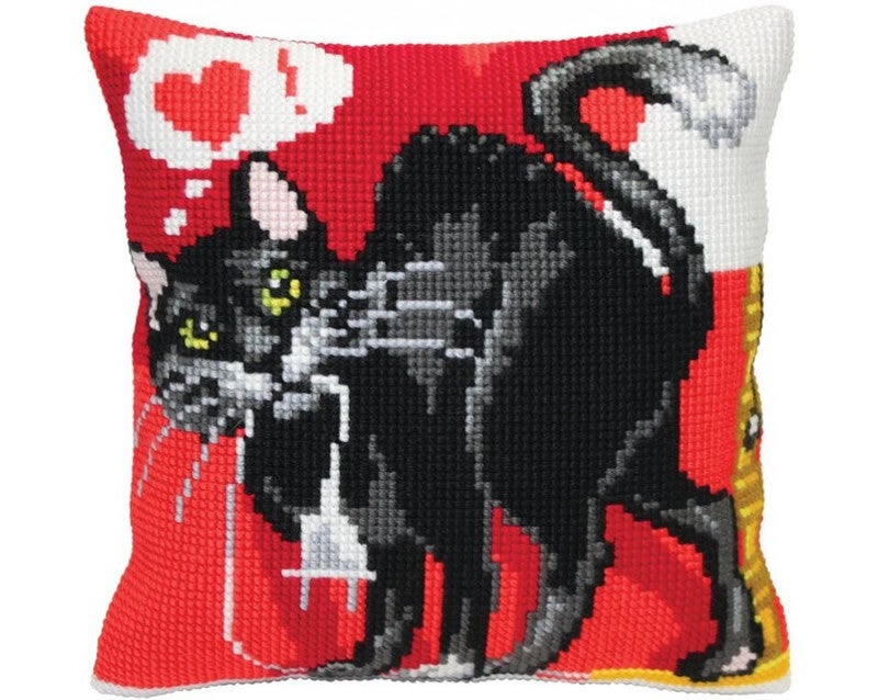 Kruissteek kussen borduurpakket op voorbedrukt canvas.