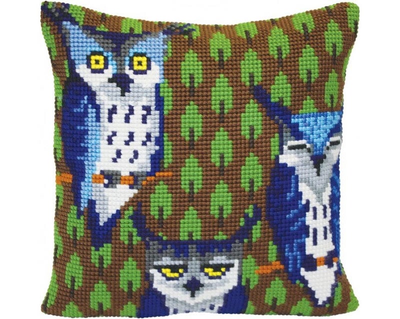 Kruissteek kussen borduurpakket op voorbedrukt canvas.