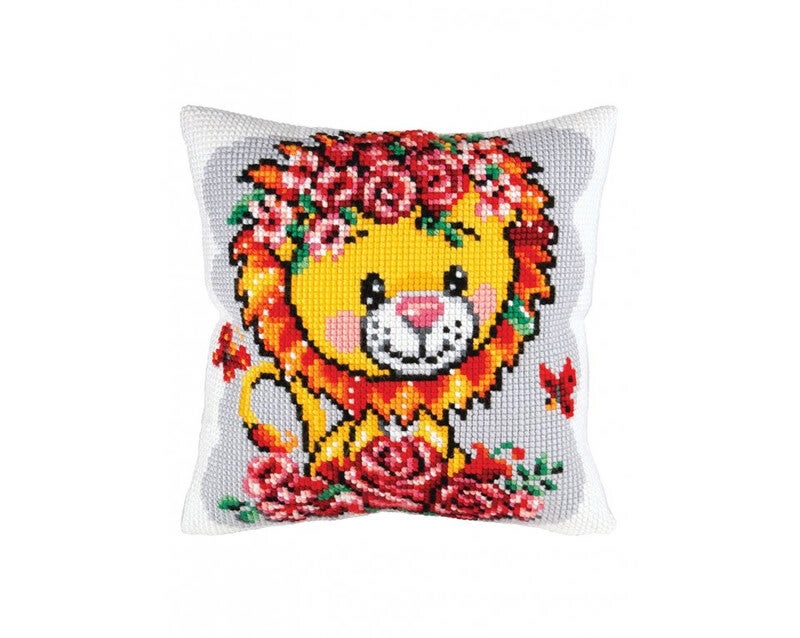 Kruissteek kussen borduurpakket op voorbedrukt canvas.