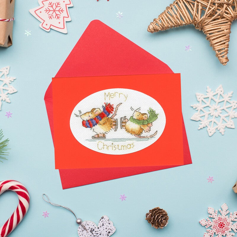 Borduurpakket - Margaret Sherry Christmas Cards - Mice on Ice